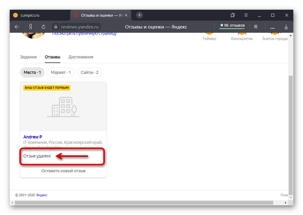 Избавиться от своего собственного отзыва, оставленного под тем или иным контентом, вне зависимости от сервиса или платформы, можно через личный кабинет Яндекса. Более того, данный метод стоит рассматривать как основной, из-за доступа сразу ко всем сервисам компании и отсутствия каких бы то ни было ограничений на возможность удаления.