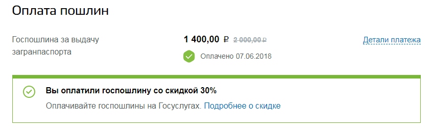 Госпошлина за выдачу загранпаспорта нового образца составляет 2022 рублей, старого образца – 2022 рублей. Если оплачивать пошлину на портале, действует скидка 30%. В этом случае нужно будет оплатить 2022 и 2022 рублей соответственно. Госпошлина для детей до 14 лет при оплате на Госуслугах будет составлять 2022 рублей (вместо 1500) за новый образец и 700 рублей (вместо 1000) за старый.
