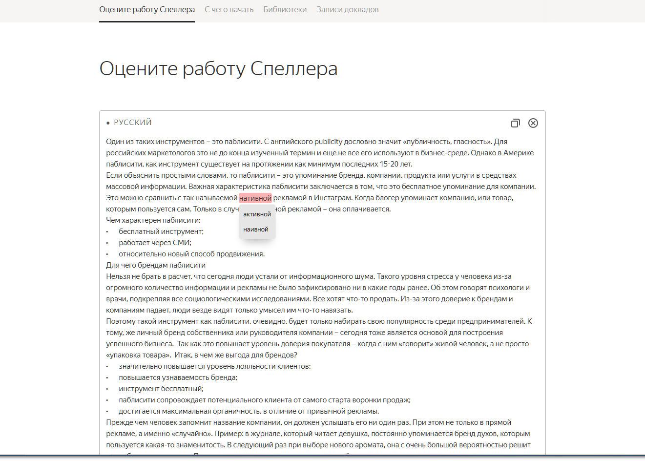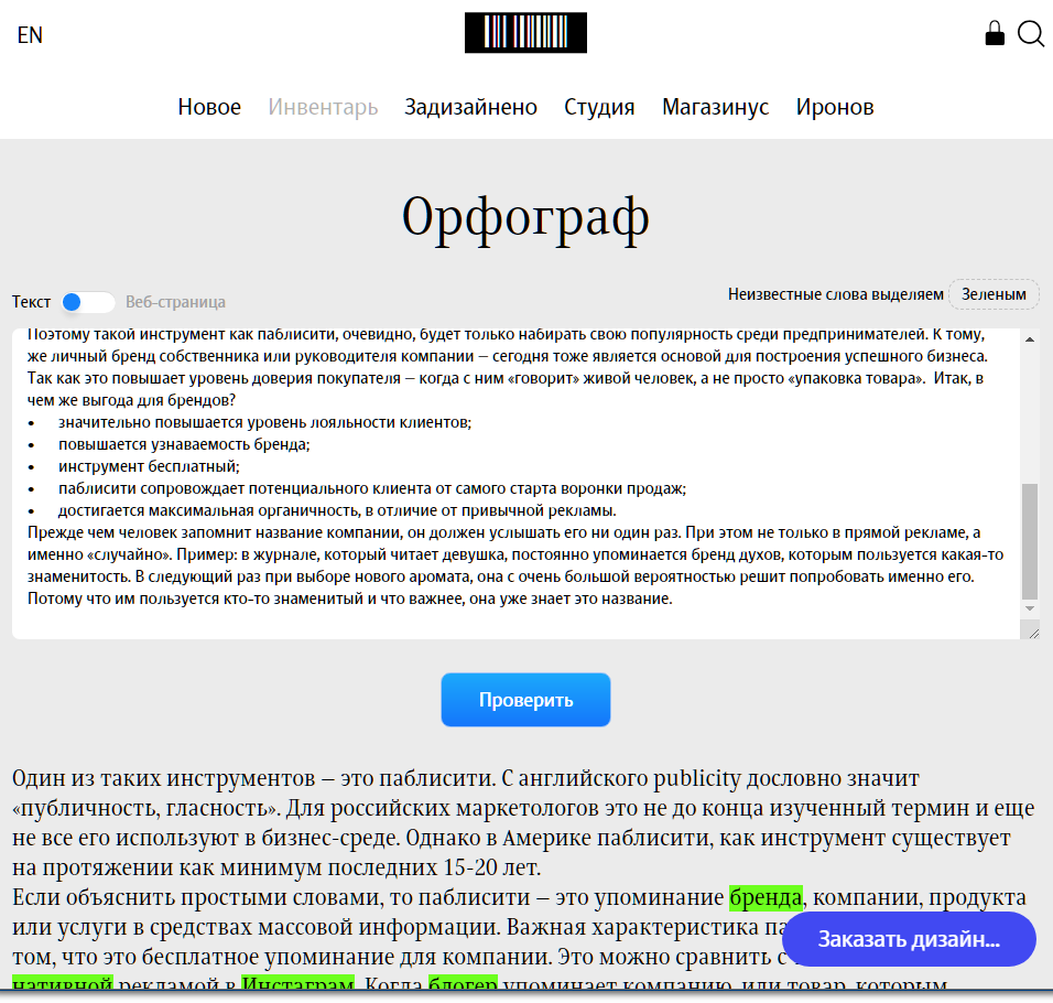 Сервис подсветит ошибки и предложит варианты их исправления (но не всегда). Есть бесплатный доступ, но для его получения все равно нужно пройти регистрацию на платформе.
