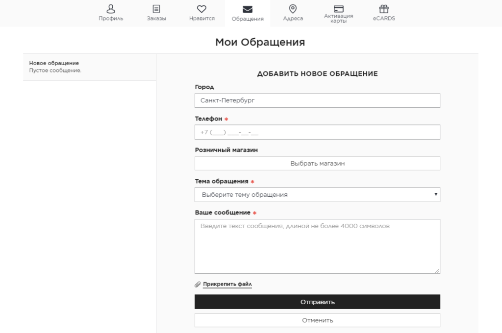 Если вы хотите отправить обращение редакции сайта, нажмите на кнопку «Обращения», затем – «Новое обращение» и заполните форму. Для этого укажите город, телефон для связи, розничный магазин Лэтуаль, тему обращения, текст вашего сообщения. При необходимости вы можете прикрепить свой файл.
