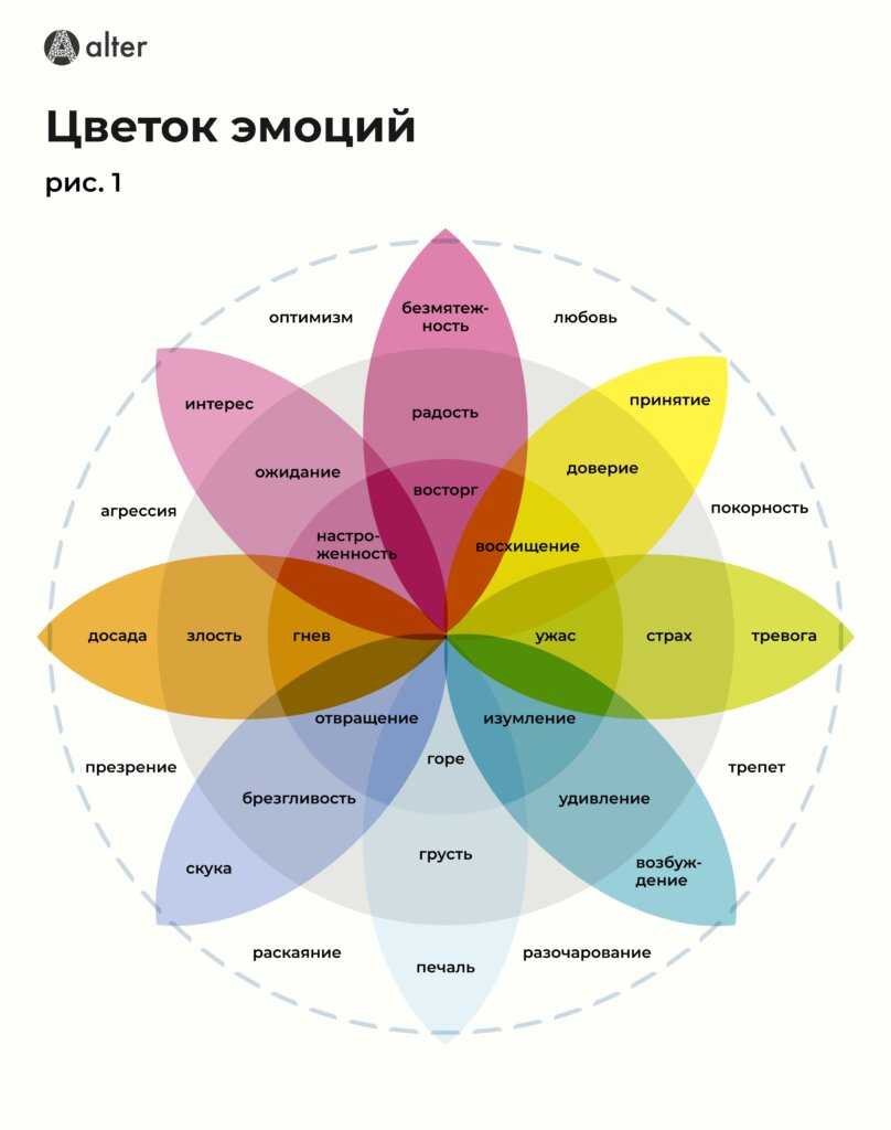 Как работает: представляет собой список основных эмоций и их оттенков в различной степени. Таблица чувств помогает классифицировать эмоциональные состояния и понимать, к какой группе они относятся.