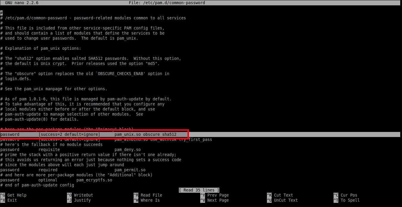 $ sudo nano /etc/pam.d/common-password