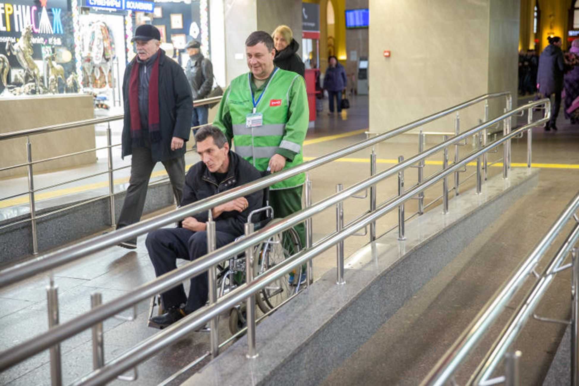 На вокзалах РЖД действует ЦСМ — центр содействия мобильности. Он призван помогать инвалидам, которые отправляются в путешествие без сопровождающего лица. ЦСМ предлагает бесплатный перечень услуг: