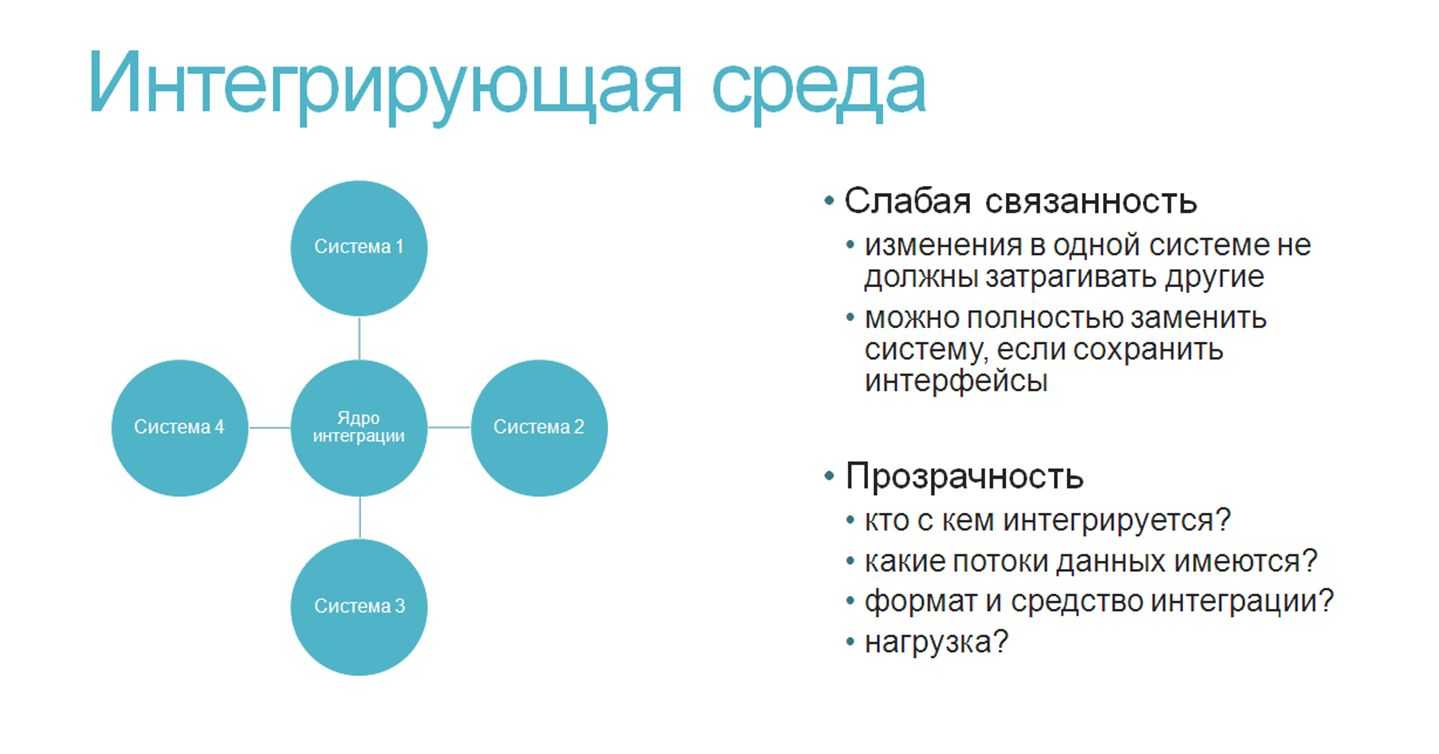 - Конечно, если у вас две системы, которые обмениваются по механизму «точка-точка», вам интегрирующая среда, скорее всего, не нужна, потому что особых проблем у вас пока что нет.