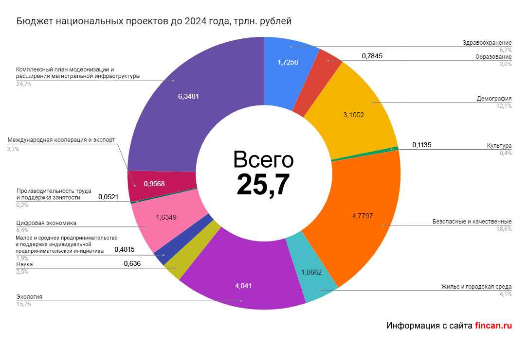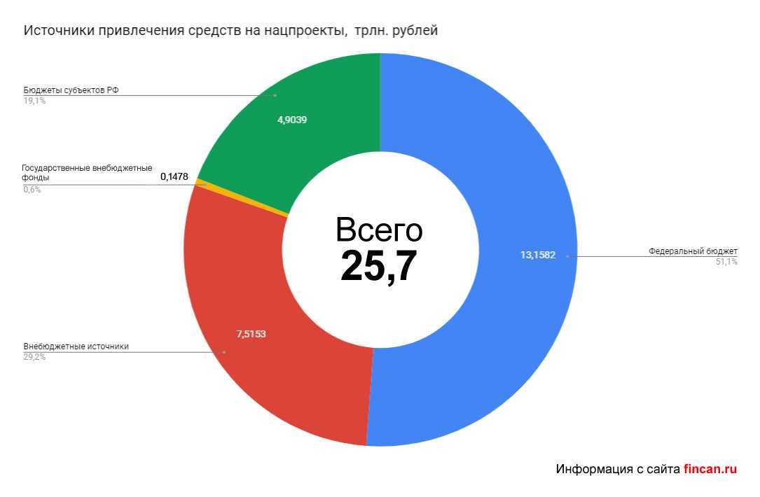 Для реализации всех нацпроектов денежные средства будут привлечены из следующих источников и в следующих размерах: