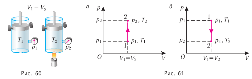 Это означает, что всё передаваемое газу количество теплоты идёт на увеличение его внутренней энергии. При этом приращение внутренней энергии газа (рис. 61, а). А если газ при изохорном