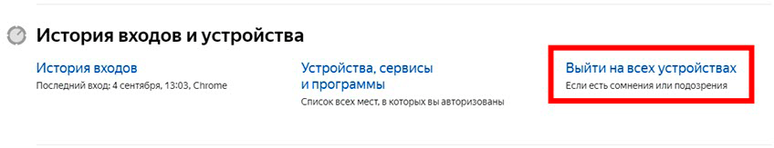 4. В разделе «История входов и устройства» выберите «Выйти на всех устройствах».
