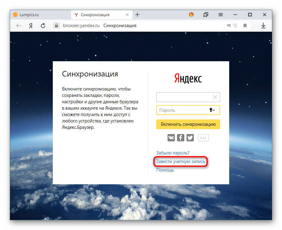Откроется страница регистрации и входа. Нажмите на кнопку «Завести учетную запись».