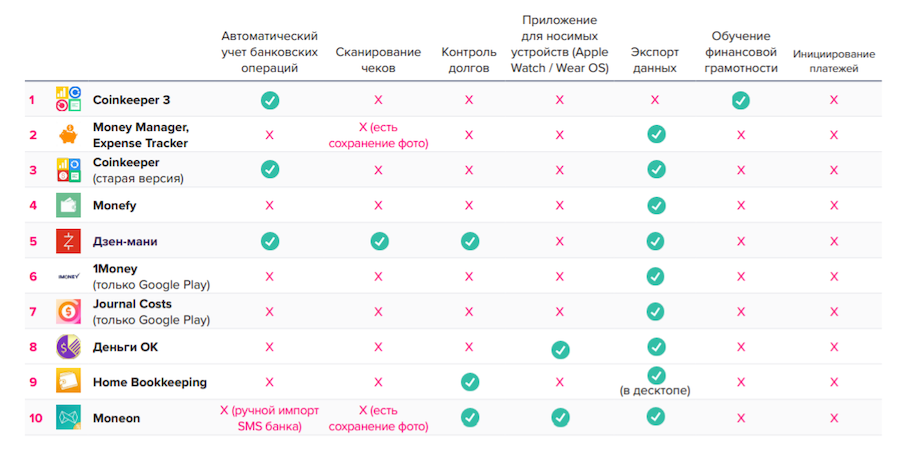 - Всего три сервиса из топ-10 имеют умеют вести автоматический учет банковских операций. Такая функция позволяет не записывать расходы вручную, а получать данные о состоянии счета напрямую из банка.