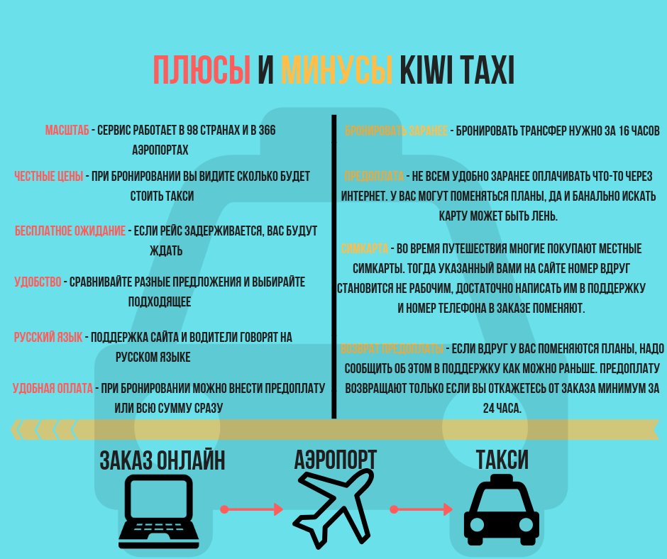 Заказываю трансферы от KiwiTaxi из аэропорта до отеля уже долгое время. Во всех случаях машины были поданы своевременно, заказанного класса. Водители вежливы, помогают с багажом и встречают в аэропорту с табличкой. Умеренные цены, хороший сервис, выручает самостоятельных путешественников.