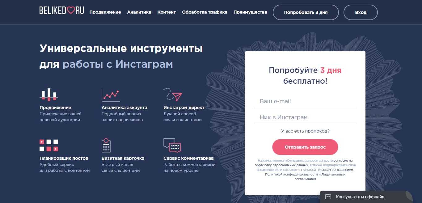 BeLiked – онлайн платформа, предназначенная специально для того, чтобы подсказать вам, как привлечь новых подписчиков в Инстаграм, увеличить охваты и другие показатели в профиле. Это целый комплекс инструментов, который позволяет быстро и эффективно раскрутить любой профиль в этой соцсети. Здесь доступен массфолловинг и масслайкинг, автоматический просмотр stories, отсеивание и отписка от ненужных аккаунтов.