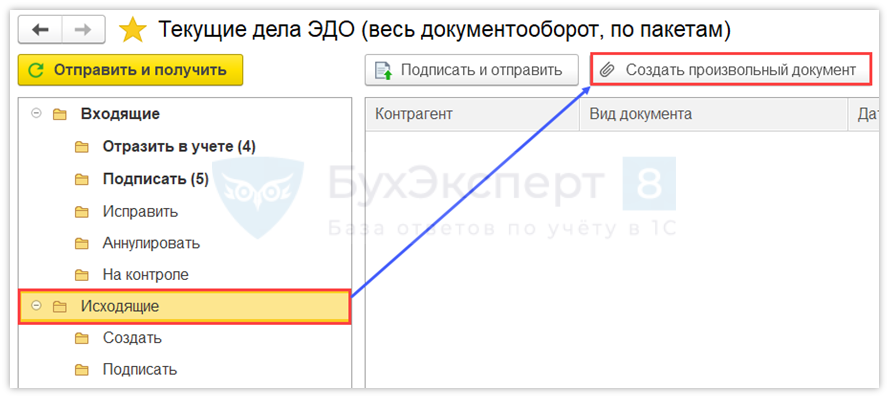 Произвольный документ ЭДО не имеет строго описанной XML-структуры как УПД и относится к неформализованным документам. Чтобы его создать, зайдите в рабочее место Текущие дела ЭДО на вкладку Исходящие и нажмите кнопку Создать произвольный документ.