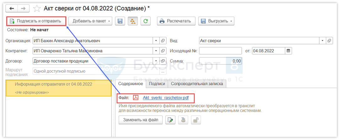 - Первичный учетный документ о приемке в ЕИС поставщик формирует в личном кабинете, подписывает его цифровым сертификатом и отправляет контрагенту.