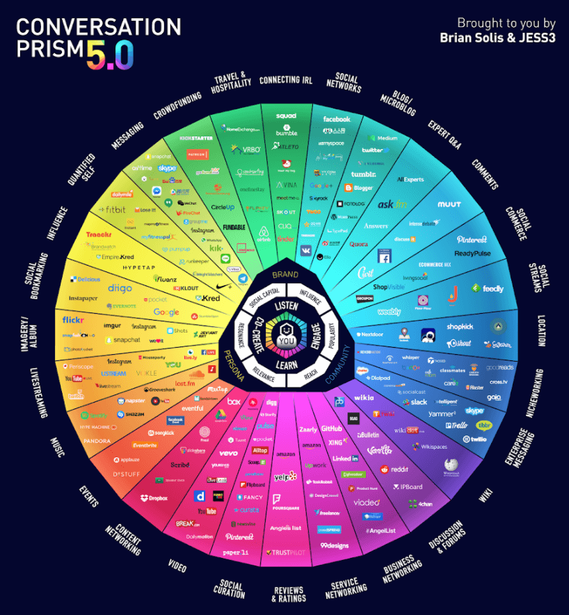 Аналитик Брайан Солис представил на виртуальной карте все типы социальных медиа, где собраны наиболее крупные и известные площадки.