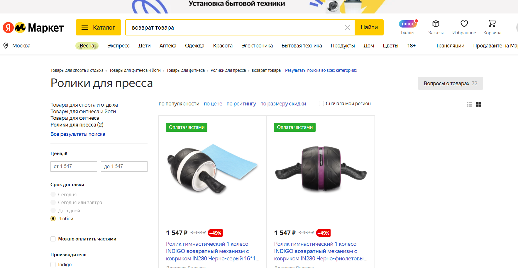 Популярная практика — искать товар по описанию проблемы, которую он должен решить. Такое бывает, когда человек не знает, как именно называется то, что ему нужно. Например, вводит в поиск «засор в ванной», если ищет любое средство для прочистки или «боль в коленях», если ищет бандаж или тейпы для суставов.