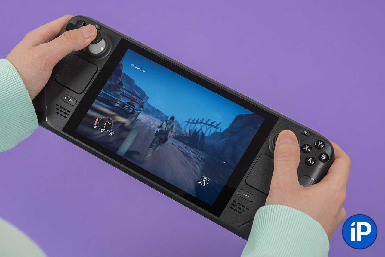 Самый большой минус – автономность. Если я запускаю тот же Киберпанк, а консоль не подключена к зарядке, уже через 30-40 минут гаджет будет сигнализировать о разряженной батарее. Но с другой стороны, это как раз и позволяет не просиживать пол-ночи за прохождением, а чётко контролировать игровые сессии.