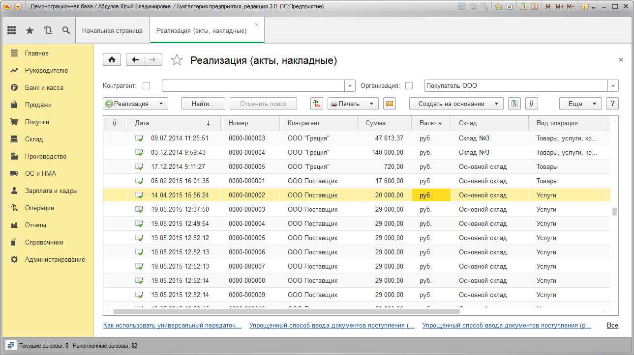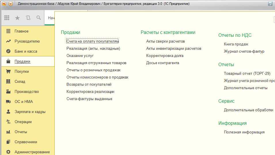 В большинстве конфигураций в главном меню присутствуют разделы «Продажа» и «Покупка» (или «Продажи» и «Закупки»):