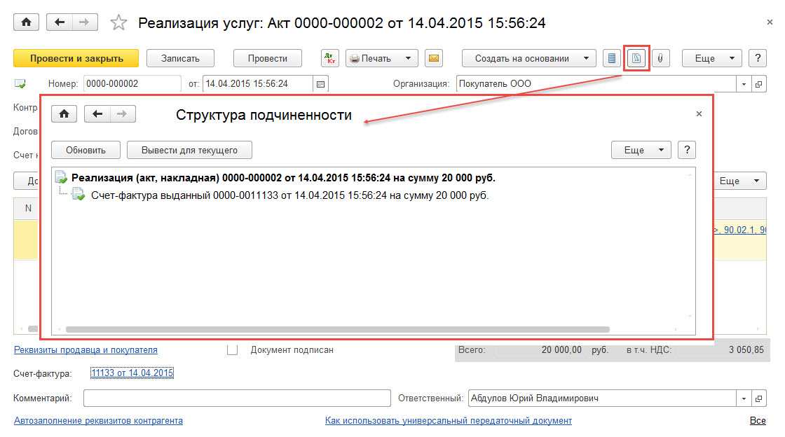 Также из карточки мы можем посмотреть структуру подчиненности документа: