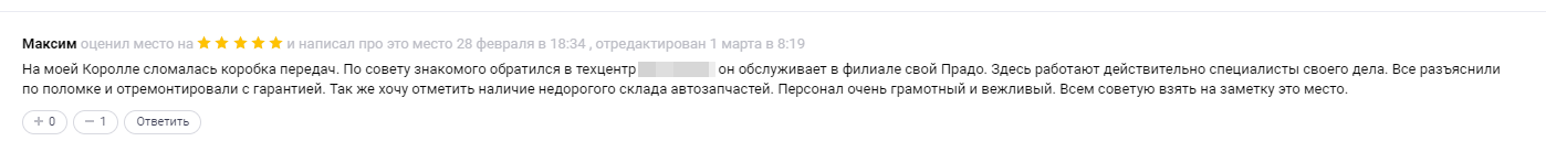 Пример хорошего отзыва