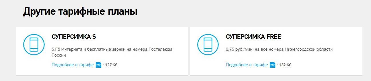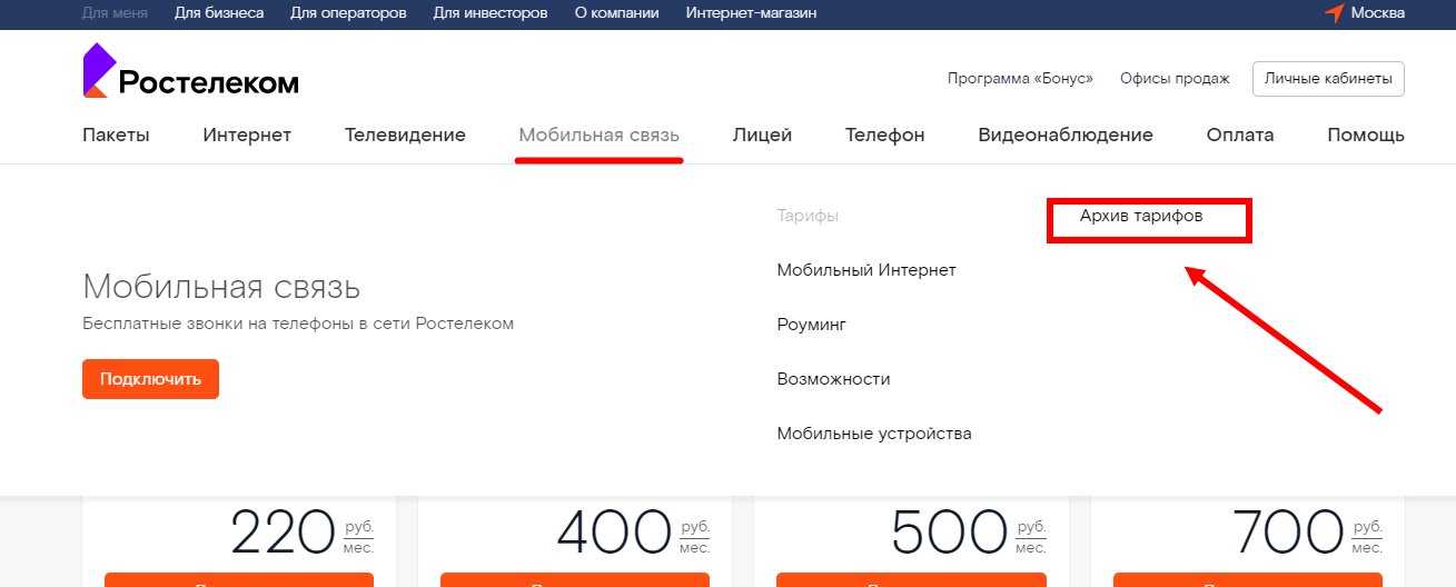 Архивные тарифы на услуги для мобильной связи Ростелеком