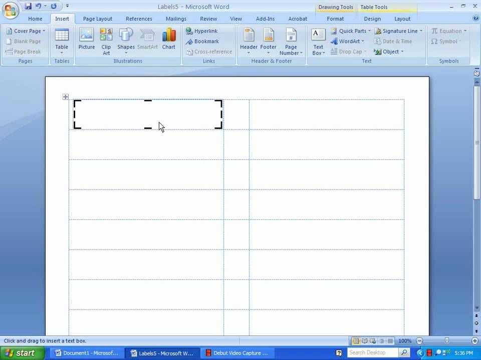 Word открывает новый документ, содержащий таблицу с размерами, соответствующими продукту-этикетке.