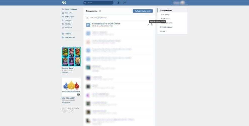 2. Наведите курсор на нужный документ и нажмите на крестик в правом верхнем углу. Это приведет к удалению документа.