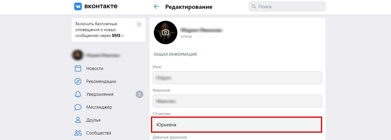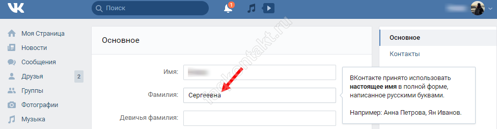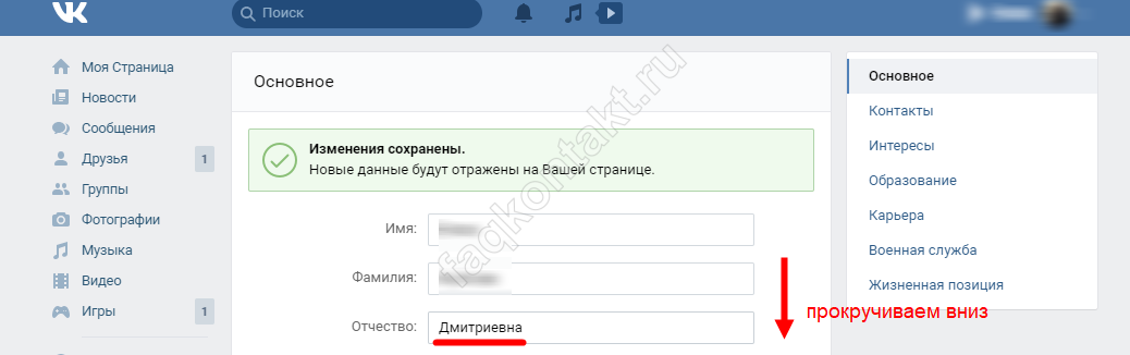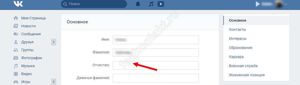 Как добавить или изменить отчество ВКонтакте?