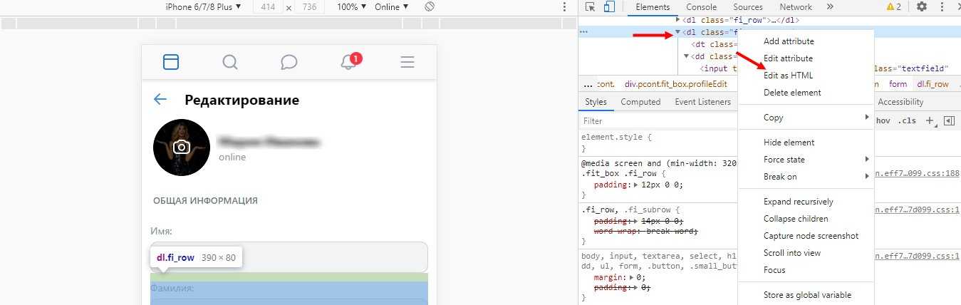 - Щелкните правой кнопкой мыши еще раз и выберите в меню «Редактировать как HTML).
