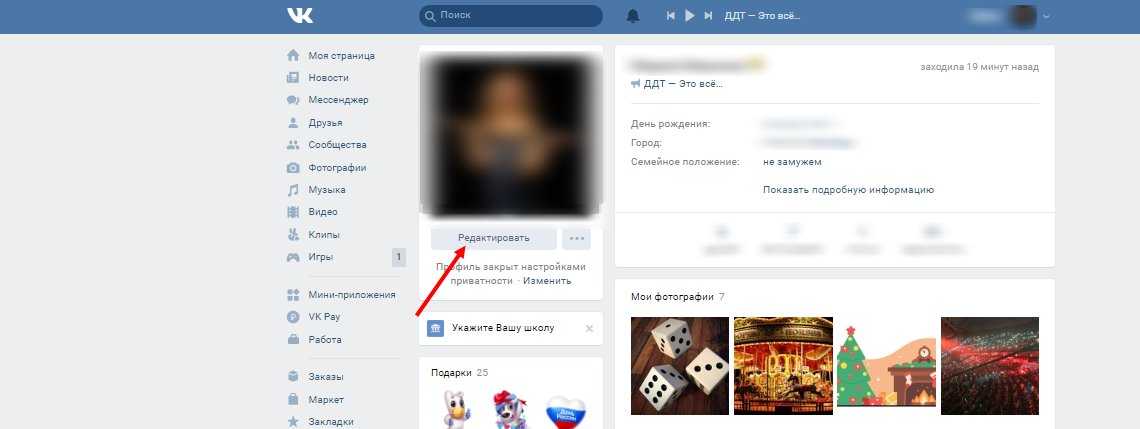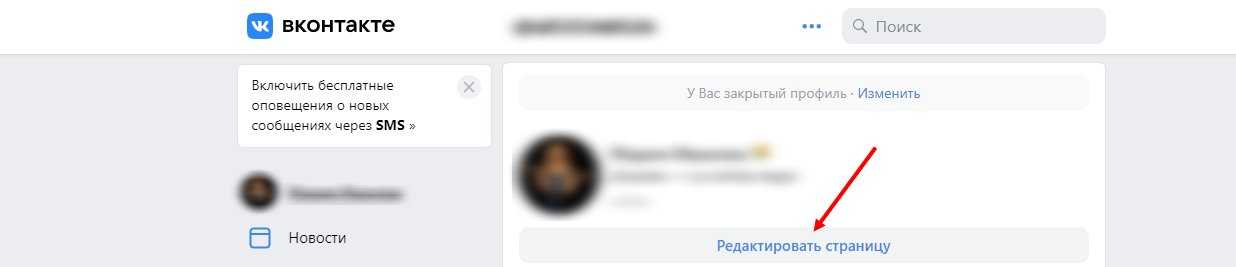 - Открываем свою страницу ВК для редактирования (лучше браузером Хром)