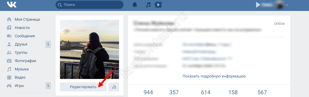 - перейдите на страницу с данными профиля и кликните на кнопку «Редактировать» под аватаркой;