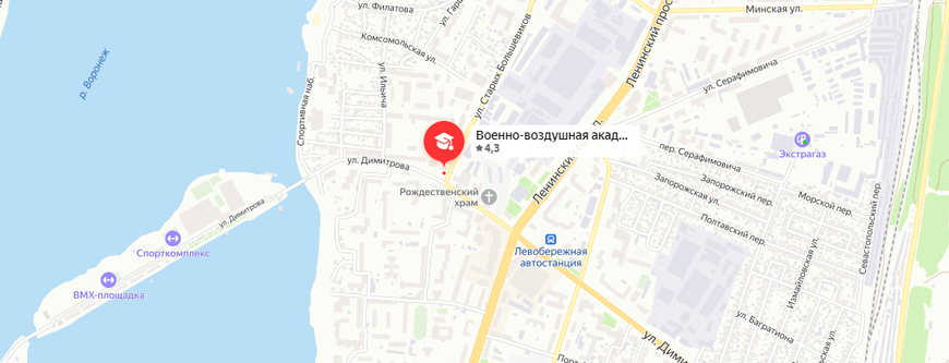 Головное отделение располагается в Воронеже. В состав академии входят: