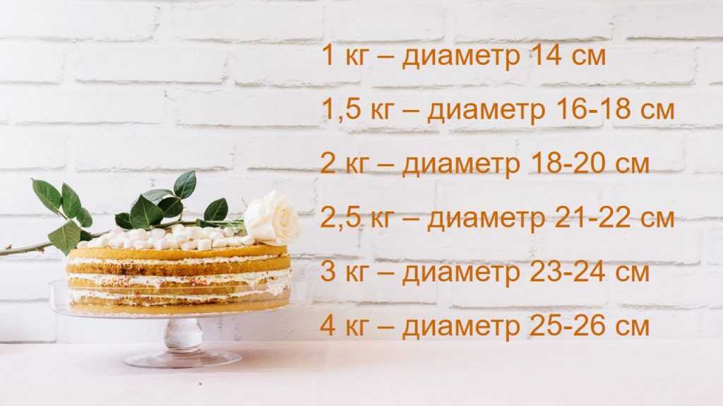 Пример: на торт весом 1 кг нужна форма диаметром 14 см. Чтобы блюдо с внушительной начинкой не превысило запланированную массу, возьмите форму 12 см.
