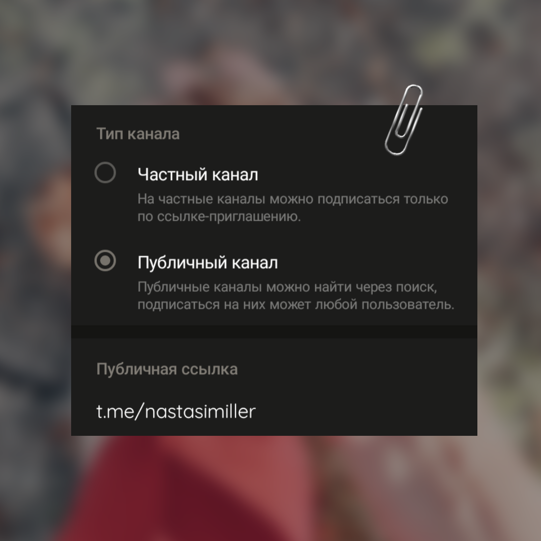 На частный канал люди смогут подписаться только по специальной ссылке, которую вы им отправите. Такой канал считается приватным и его не видно в поиске. Также вы можете сделать публичный канал, в этом случае вам нужно придумать уникальную ссылку-логин для своего канала.