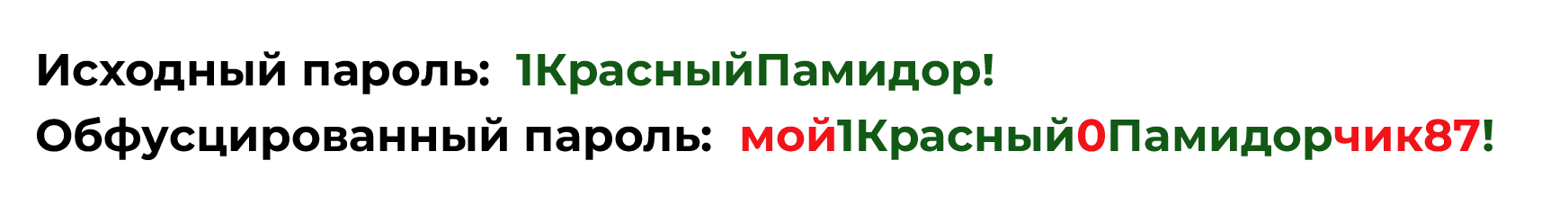 Обфусцированный пароль бесполезен для мошенника, ведь он не откроет доступ к аккаунту. Понять, какие символы лишние, а какие относятся к телу пароля, практически невозможно.