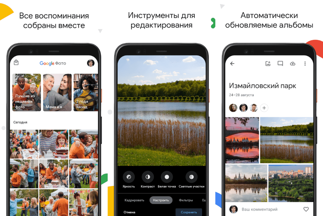 Google Photos также позволяет редактировать изображения, группировать их по разным параметрам, делиться ими с другими людьми (в том числе не имеющих аккаунта в Google Photos). Чем дольше вы используете этот сервис, тем больше он узнает о ваших предпочтениях, что позволяет автоматически группировать изображения так, как это удобней для вас.