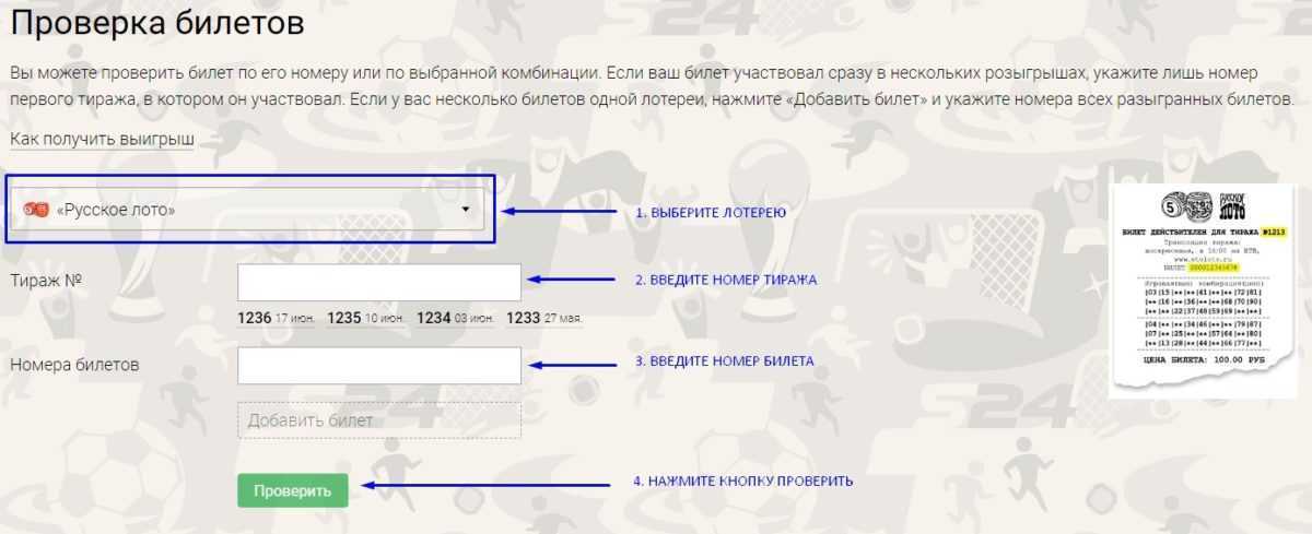 Например, вы хотите проверить билет Русское лото: