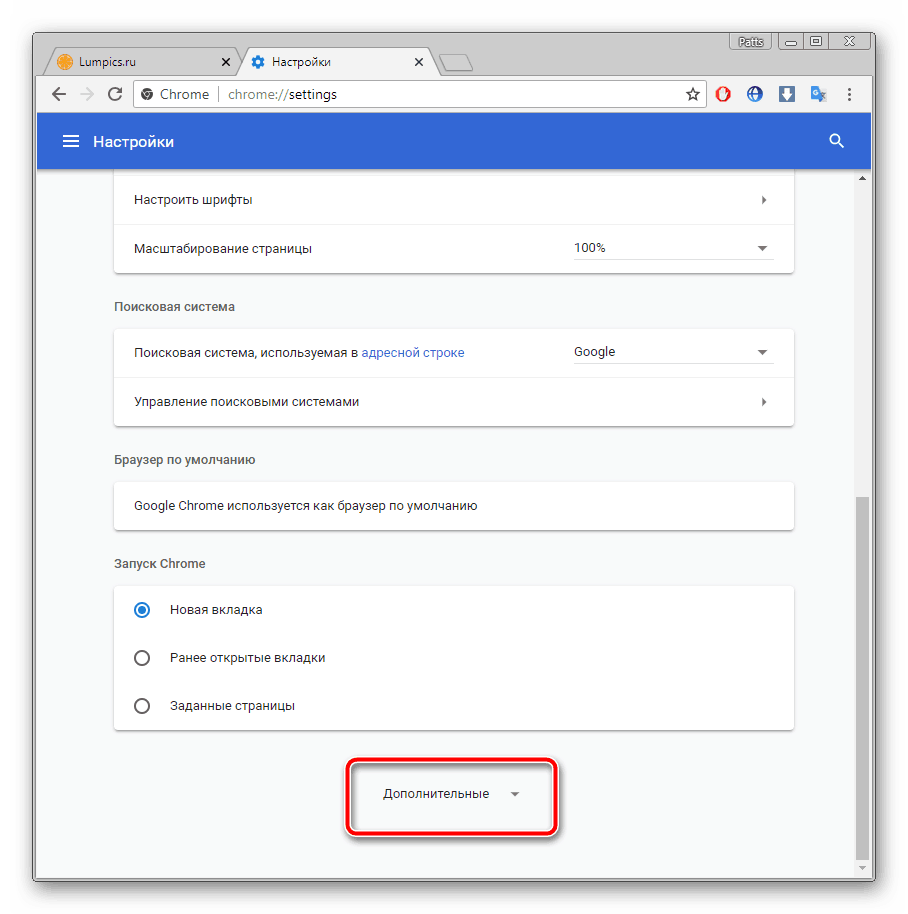 - Пролистайте страницу вниз и нажмите на «Дополнительные параметры».