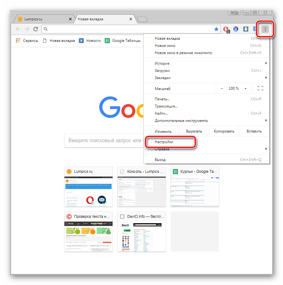 - Запустите браузер, нажмите на значок в виде трех вертикальных точек справа вверху и перейдите к разделу «Настройки».