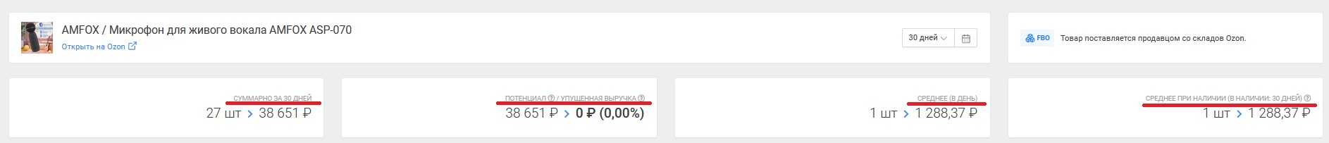 В верхней части карточки располагаются блоки, в которых можно увидеть сводку по товару, а именно: