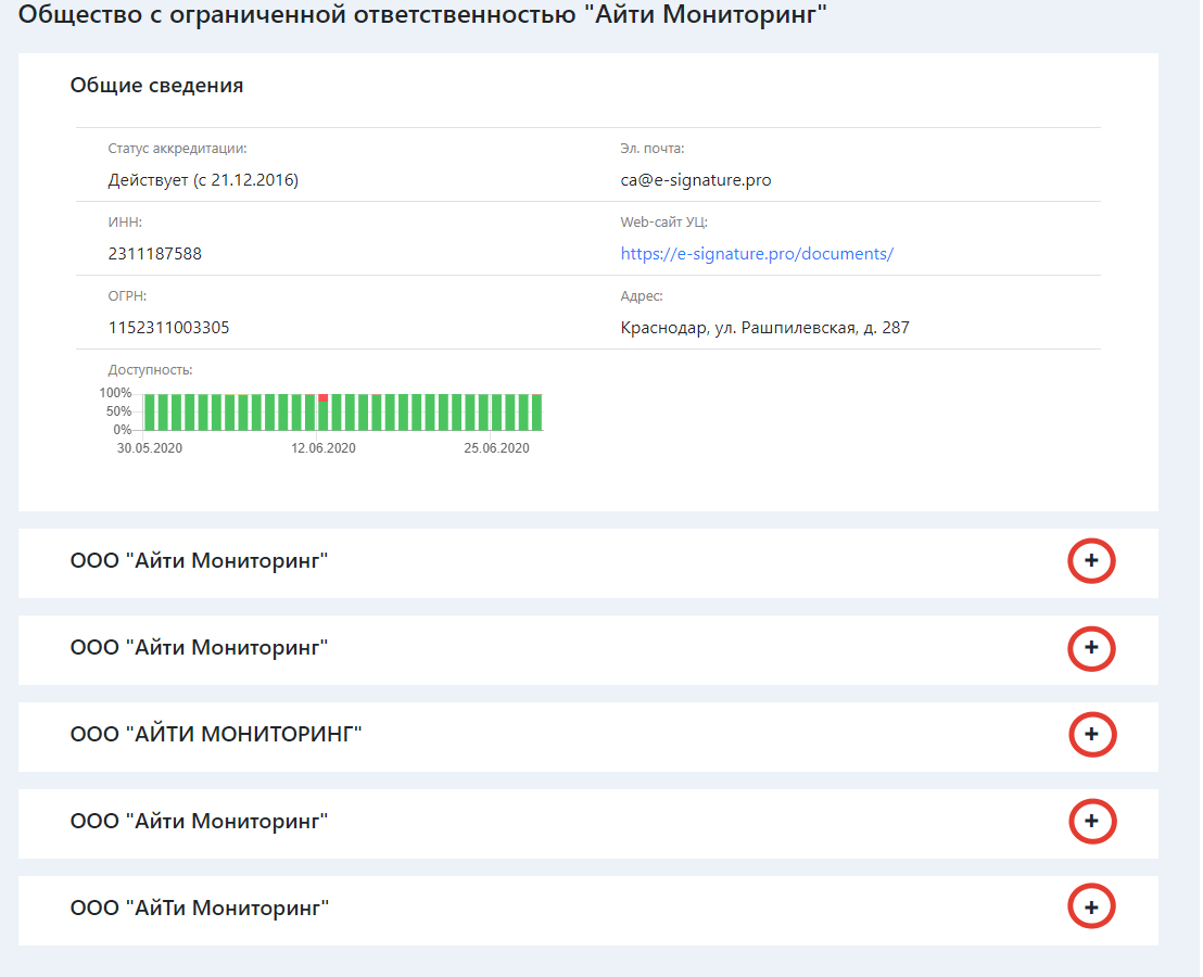 - Нажмите на наименование удостоверяющего центра, обозначенного синим цветом.