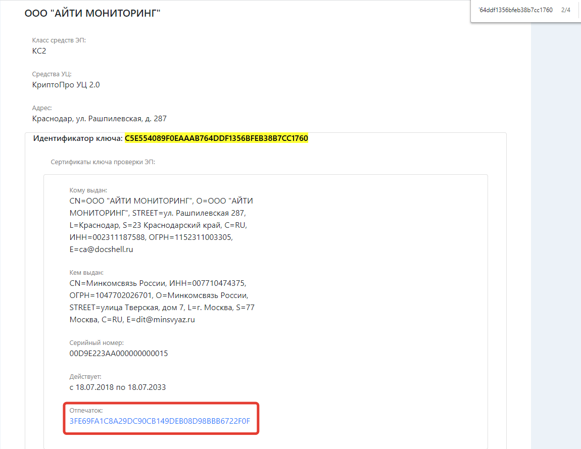 На скриншоте идентификатор ключа выделен синим цветом. Именно это значение необходимо скопировать. Он нам понадобится при поиске сертификата удостоверяющего центра.