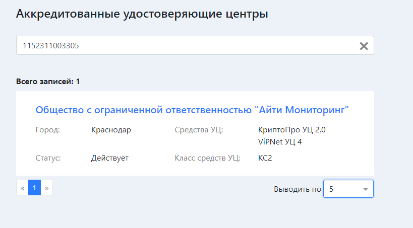 Мы ввели ОГРН и нашли удостоверяющий центр, который выдавал нам ЭЦП.