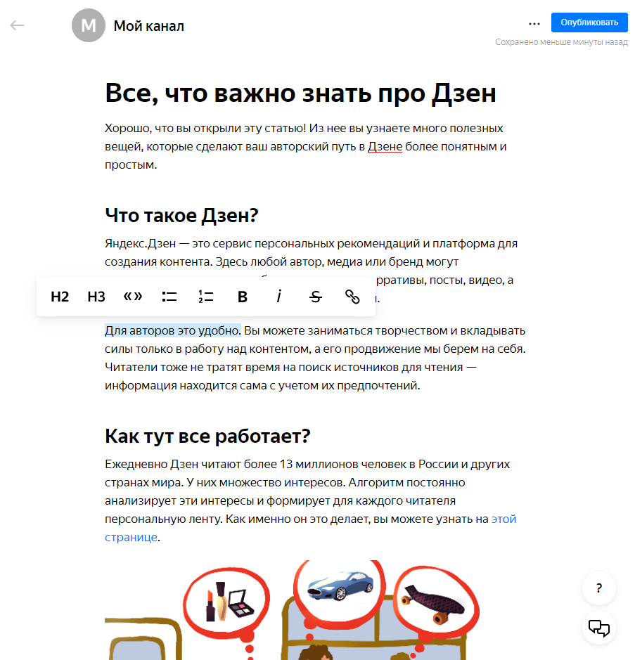 Публикуем текст в Дзене — инструкция и обзор редактора