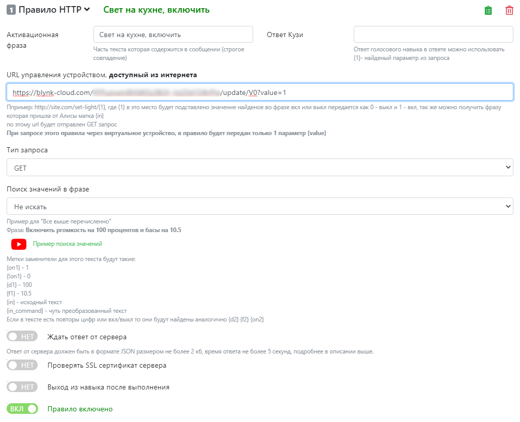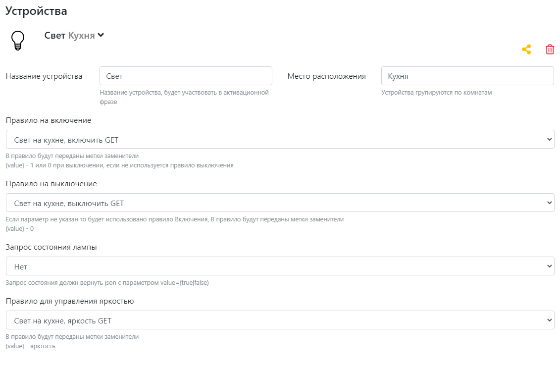 - Чтобы управлять светом в конкретной комнате, добавьте название этой комнаты в команду. Для настройки света во всей квартире добавляйте к команде слово «везде».