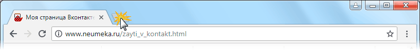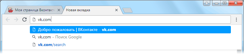 2. В верхней строке печатаем английскими буквами без пробелов vk.com или vkontakte.ru и нажимаем Enter на клавиатуре.