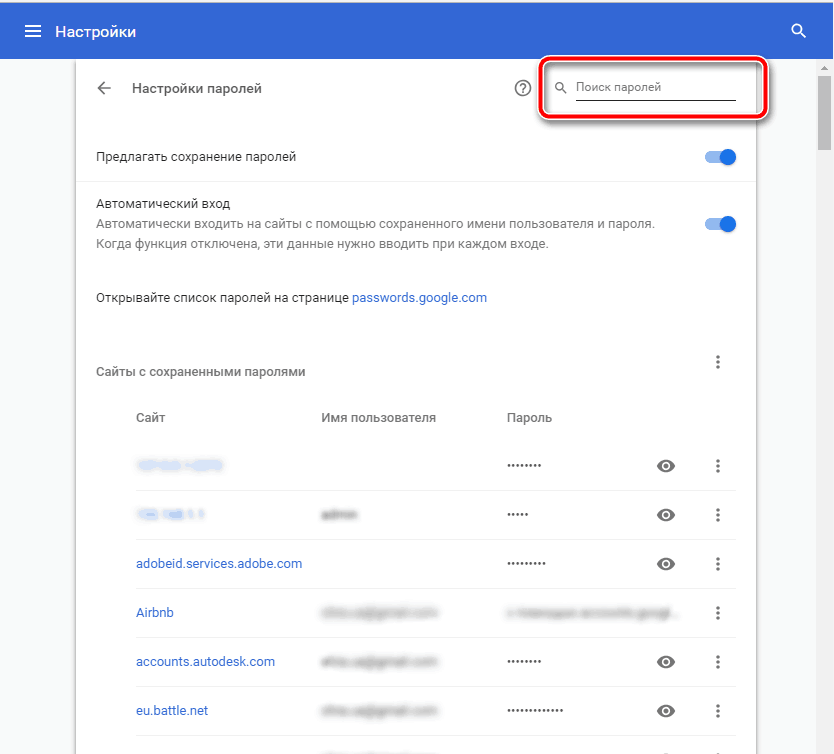 В других браузерах поиск паролей работает аналогично, но немного отличается расположение нужных разделов и полей.