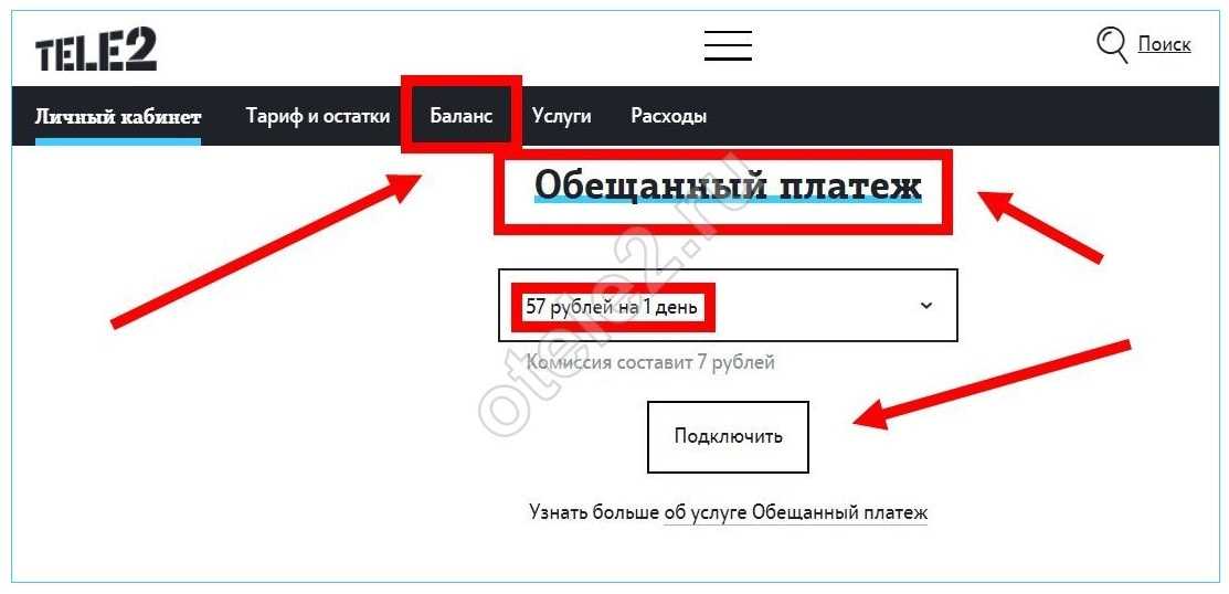 Способы подключения услуги «Обещанный платеж» от Теле2