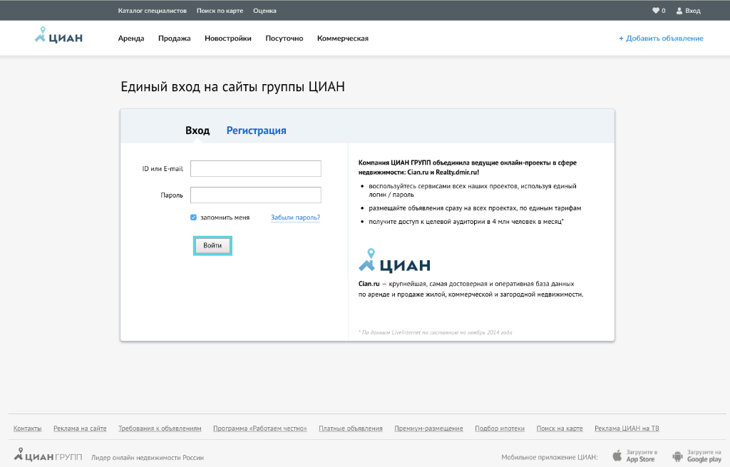 Чтобы авторизоваться в личном кабинете ЦИАН, клиентам предлагается выбрать любой наиболее удобный и подходящий способ.