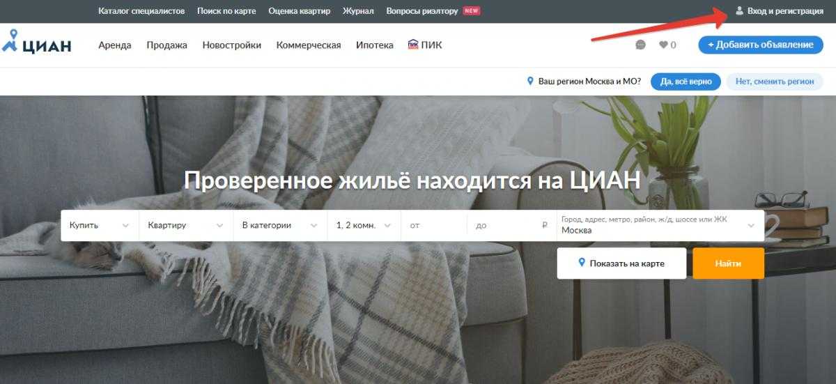 Для поиска интересующей вас недвижимости на сайте ЦИАН, вам необходимо выбрать раздел «Купить» или «Снять» в зависимости от ваших потребностей.