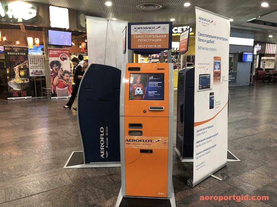 Киоски самостоятельной регистрации подходят тем, кто не успел зарегистрироваться заранее онлайн или по телефону, но хочет избежать очередей на стойках check-in. Их можно найти в московском , в аэропортах Волгограда, Нижнего Новгорода, Новосибирска, Омска, Тюмени, Владивостока, Краснодара, Амстердама, Токио, Тель-Авива и многих других воздушных гаванях мира, куда летает Аэрофлот . В Шереметьево они располагаются в (в залах отлета) и зале .